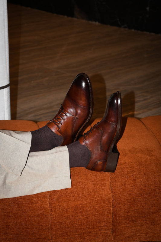 Están fabricado en piel natural sin procesos previos en construcción welt, son pintados a mano artesanalmente, Interior de piel y plantilla doble confort