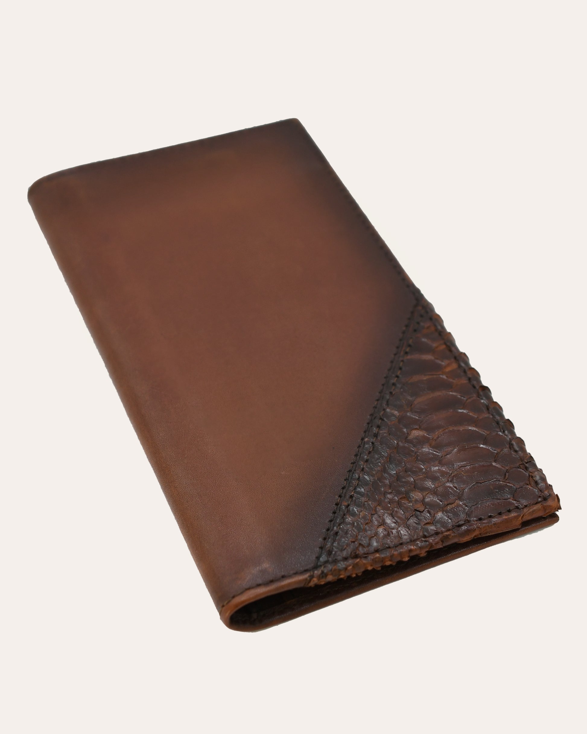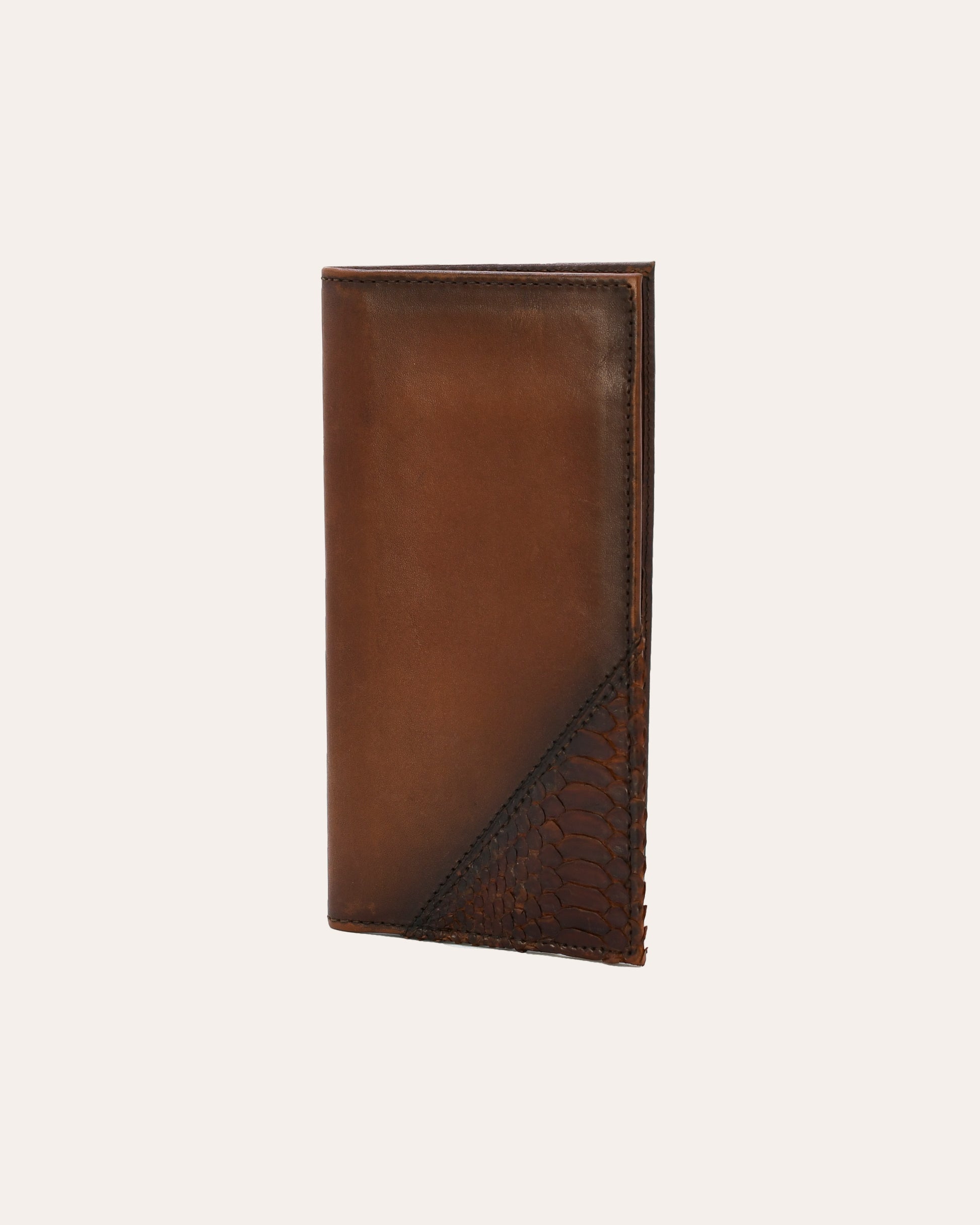 Confeccionado en piel natural, lleva un injerto en piel genuina de víbora que lo convierte en una pieza única, con textura exótica y carácter auténtico.