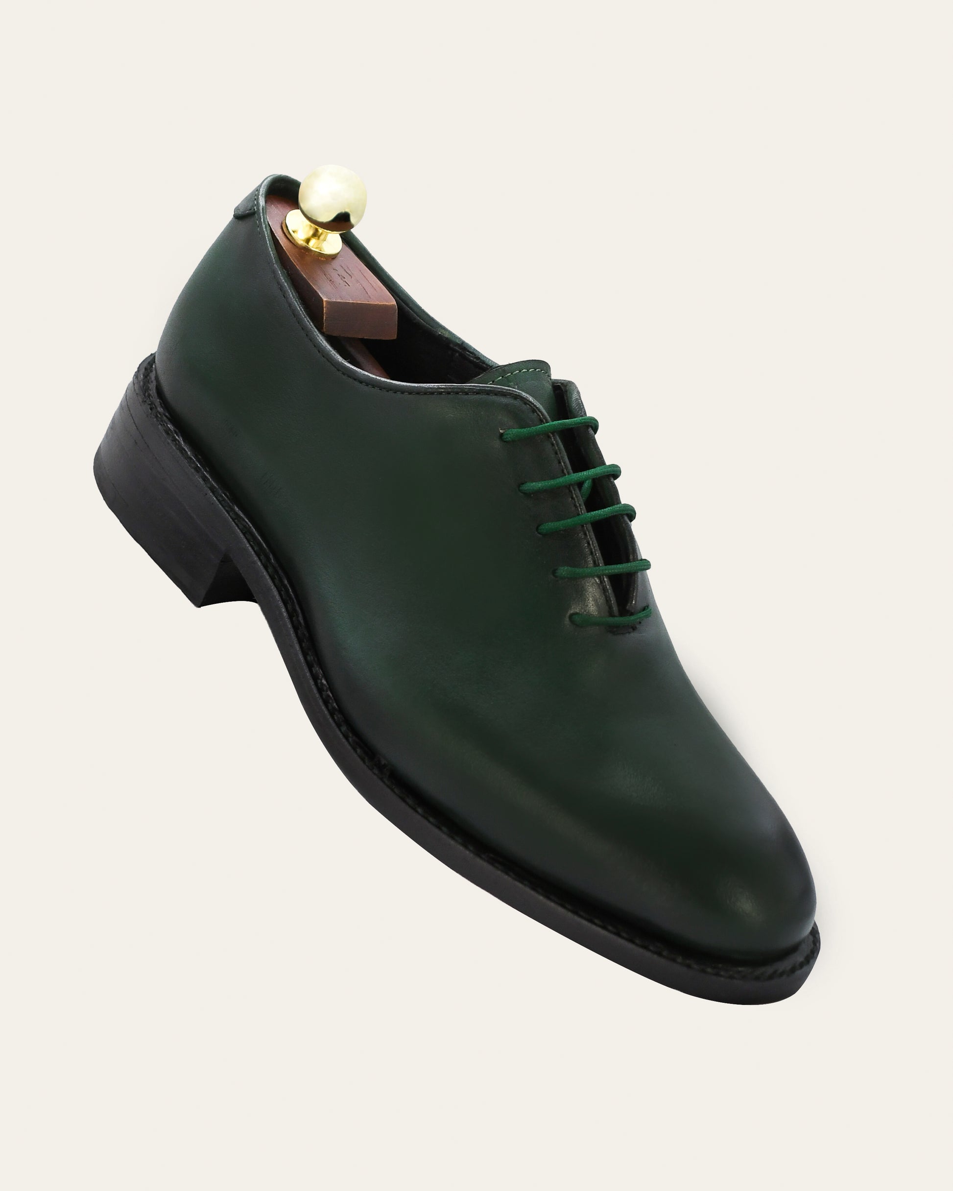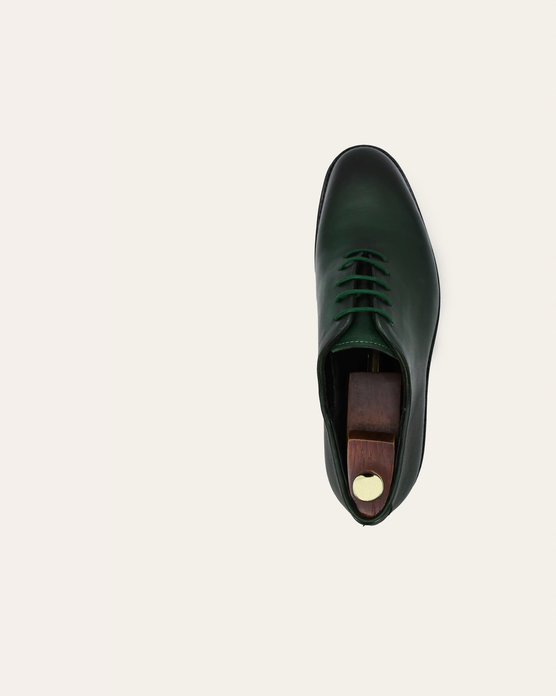 El zapato kiotto es un oxford en color Verde especial que refleja elegancia y sofisticación, ideal para ocasiones formales o para quienes buscan un estilo atemporal. Está elaborado con piel natural pintado a mano, lo que garantiza un acabado refinado y artesanal. El interior también está forrado en piel de res, proporcionando una sensación suave y lujosa con cada paso. Además, cuenta con una doble plantilla de poliuretano forrada en piel, diseñada para brindar una comodidad óptima durante el uso prolongado.