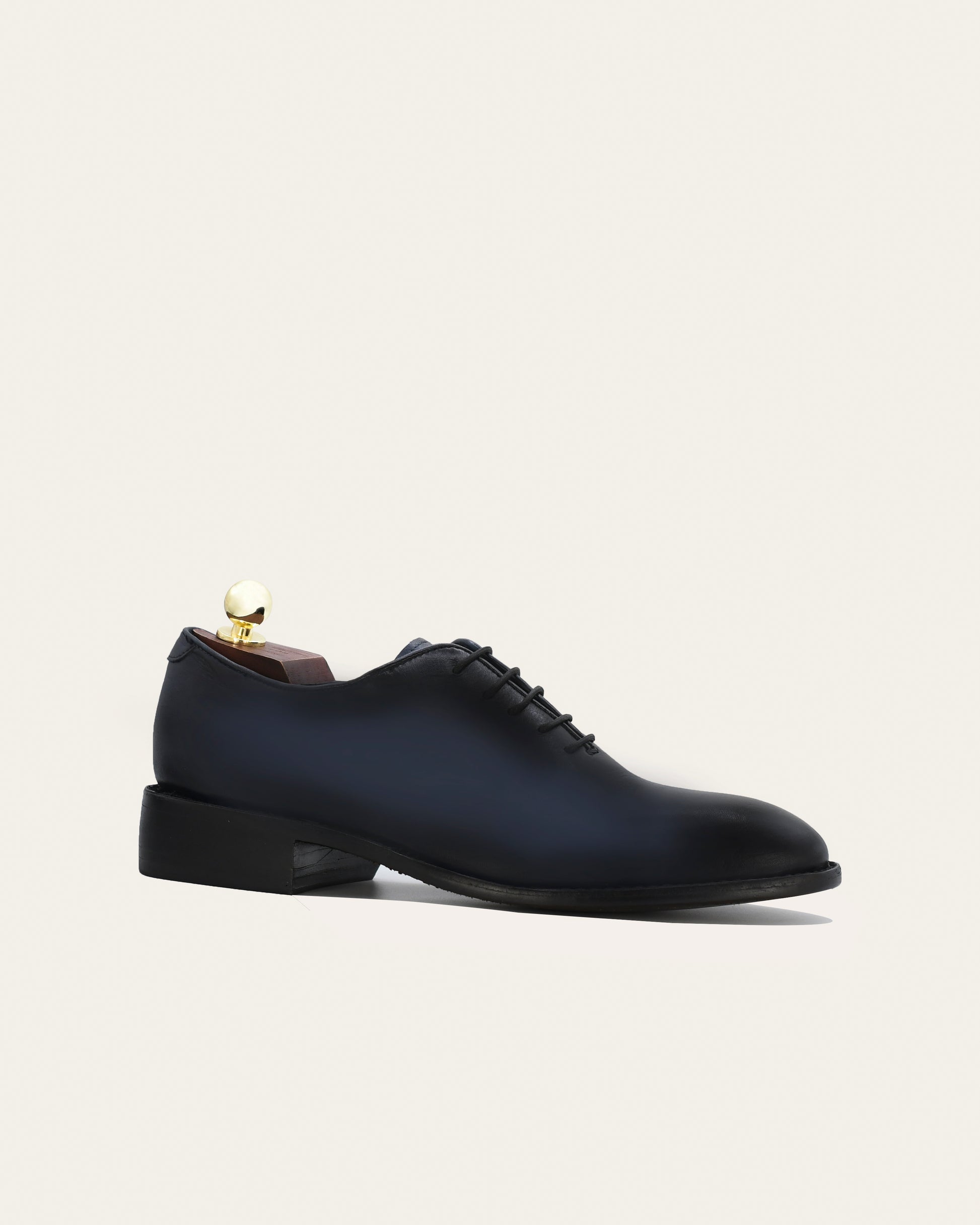 El zapato kiotto es un oxford en color azul especial que refleja elegancia y sofisticación, ideal para ocasiones formales o para quienes buscan un estilo atemporal. Está elaborado con piel natural pintado a mano, lo que garantiza un acabado refinado y artesanal. El interior también está forrado en piel de res, proporcionando una sensación suave y lujosa con cada paso. Además, cuenta con una doble plantilla de poliuretano forrada en piel, diseñada para brindar una comodidad óptima durante el uso prolongado.