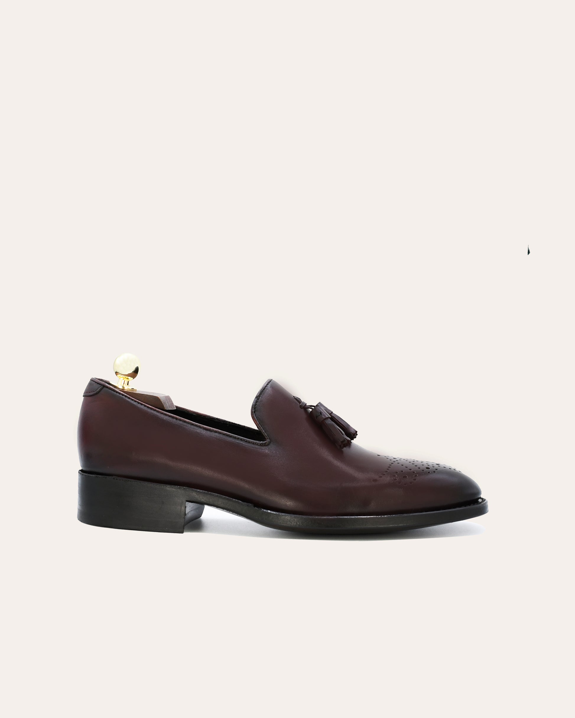 El zapato Palencia en color vino es un loafer , elaborado artesanalmente con piel natural pintado a mano, ofreciendo un acabado sofisticado y distintivo. Este modelo mantiene el equilibrio perfecto entre elegancia y confort. Su interior está forrado con piel de res de alta calidad, asegurando una experiencia suave y cómoda durante todo el día. Además, cuenta con una doble plantilla de poliuretano forrada en piel, brindando soporte adicional y durabilidad. El detalle de las motas en piel añade un toque clásico y elegante al diseño.